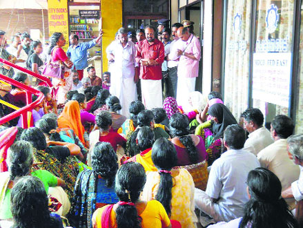 മലപ്പുറം ജില്ലാ ബാങ്കിന്റെ എടപ്പാള് ശാഖയ്ക്കുമുന്നിലാണ് തിങ്കളാഴ്ച സമരം നടന്നത്. ഇ.എം.എസ് ഭവനപദ്ധതിയില് എടപ്പാള് ഗ്രാമപ്പഞ്ചായത്തിലെ 195 ഗുണഭോക്താക്കള്ക്ക് 22,500 വെച്ച് ആദ്യ ഗഡു നല്കി ആറുമാസം കഴിഞ്ഞിട്ടും തുടര് ഗഡുക്കള് നല്കിയില്ലെന്ന് ആരോപിച്ചാണ് സി.പി.എം നേതൃത്വത്തില് സമരം നടന്നത്. യു.ഡി.എഫ് ഭരിക്കുന്ന ജില്ലാ ബാങ്ക് തിരഞ്ഞെടുപ്പു മുന്നില്കണ്ട് ജനങ്ങളെ എല്.ഡി.എഫിനെതിരെ തിരിക്കാന് വേണ്ടിയാണ് പണം നല്കാതിരിക്കുന്നതെന്ന് സമരം ഉദ്ഘാടനം ചെയ്ത സി.പി.എം ജില്ലാ കമ്മിറ്റിയംഗം പി. ജ്യോതിഭാസ് പറഞ്ഞു.